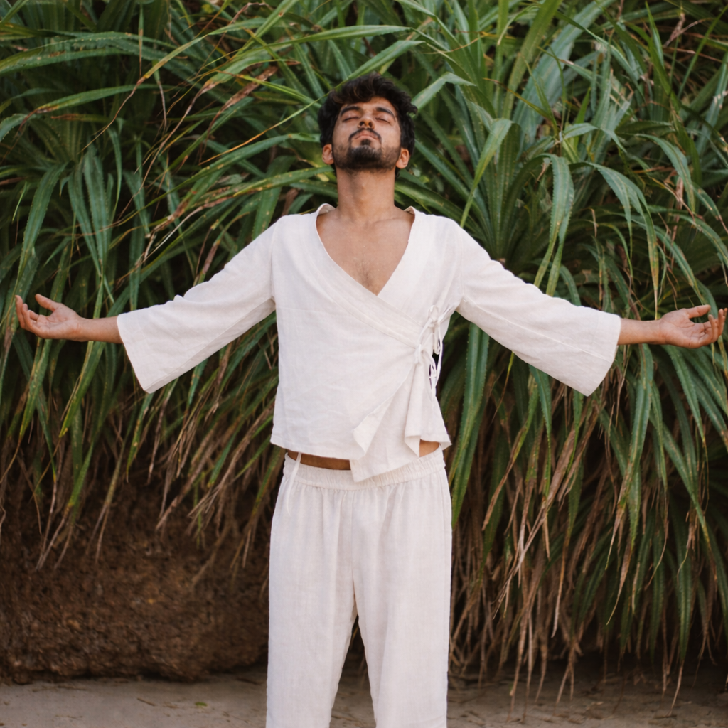 A soft organic cotton wrap top—lightweight, breathable, and effortlessly fluid.