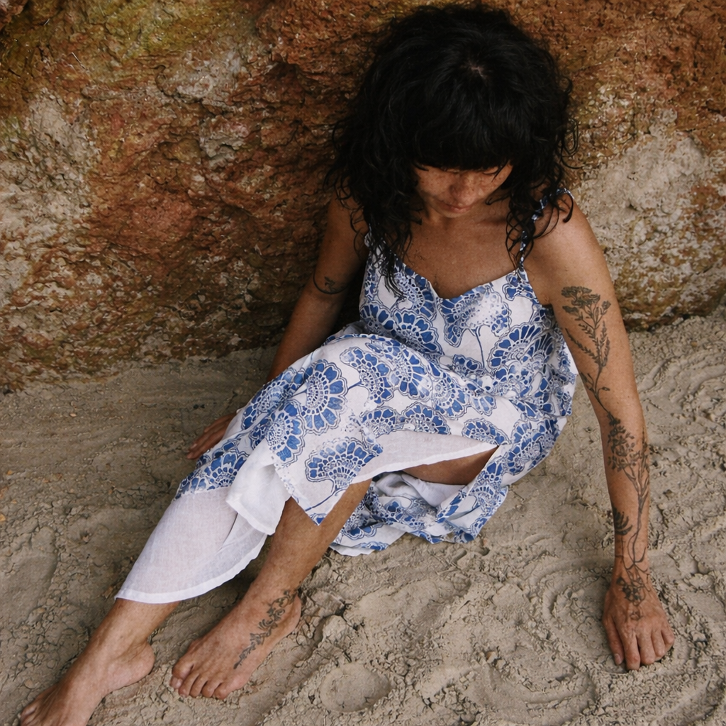 An organic cotton dress with natural dye and block print—flowing, breathable, and thoughtfully made.
